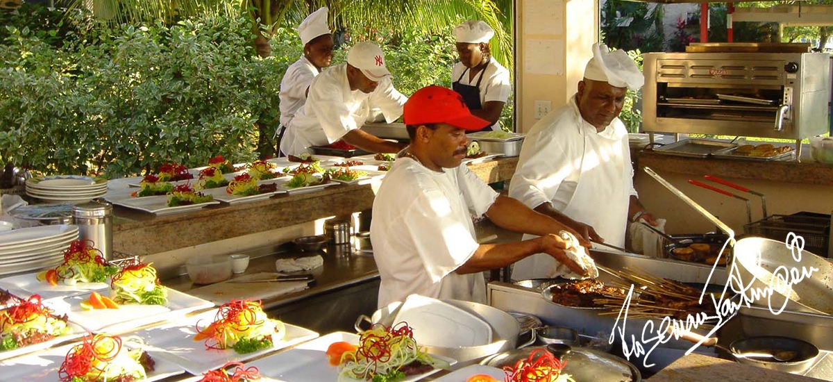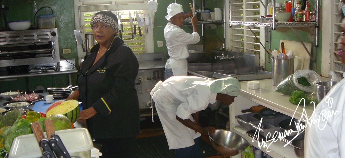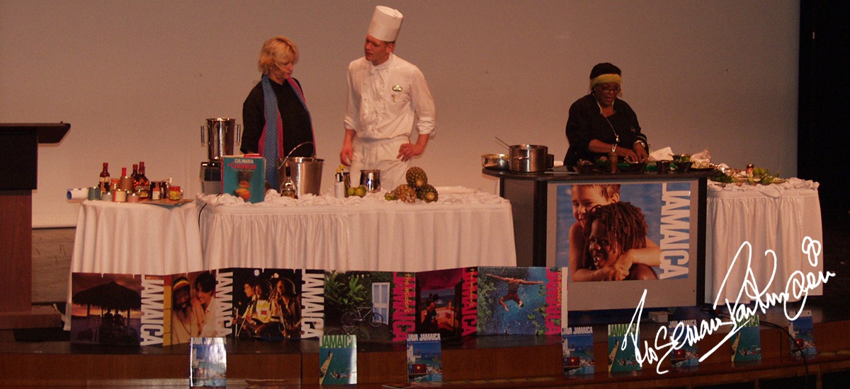 – 2001Restaurant in Jamaica. The New Yorker – article by Jessica Harris. Guest Chef for the Venice Beinnale, Washington, D.C. Guest Chef at Almond Tree Resorts (Barbados). Represented Jamaica at the ‘Cuisines of the Sun’ held at the Mauna Lani Bay Hotel in Hawaii. Guest chef (the only Caribbean chef) at the James Beard Foundation, New York. Feature speaker at the New York City American Institute for Wine and Food’s NAFST 1997. Appointed to the Board of the newly-constituted Caribbean Culinary Federation (CCF) Board’s new Blue Ribbon Board.